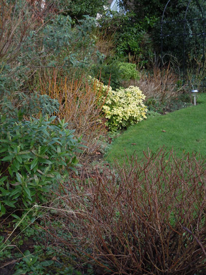 The cornus in the back is quite small now. The ones in the front garden are taking over and give lovely colour. |
