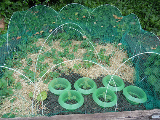 The French beans are starting to climb up their poles. These younger ones have yet to learn that trick! |