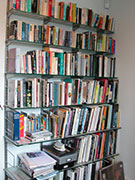 The pictures on the left shows the worktops in but before the shelving arrived. The one below shows the finished product. The photo on the right shows why we need so many book shelves in this house! |
