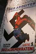 As well as the photos and words, there were several posters either separately on the wall or as part of the photo exhibition. The one on the left is supposed to represent France greedily grabbing the German factories etc. (part of the reparation programme after WW1), the middle one depicts the ongoing arguments about the colour and design of the German flag (this reflected the turmoil within the German political system) and the third is a political party advert that speaks for itself. |