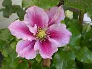 Clematis can be found crawling along the fence between us and our neighbours and in pots climing up bamboo canes at the back of the house outside the dining room window. Their middles are fascinating and it's amazing how far/tall they can grow in one season. |