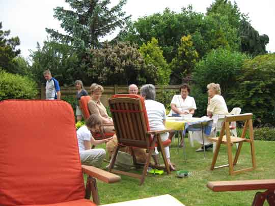 We opened our garden for St. Christopher's Hospice again this year but chose a different time of the season - early June. With the cold wet May we'd had everything was a week or two later than "normal" but we were very lucky with the weather and everybody seemed to enjoy themselves. St. Christopher's raised £351.50 on the day. HSBC then generously matched (and rounded up) what was raised on the day so the total for the afternoon was £711.50. The team were really pleased. Some of the flower photos and the views without people were taken a couple of days after the open day but give a good idea what our visitors could see. |