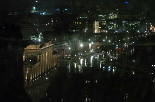 As lunch was just off the Ku'Damm, there was a bit more looking in shops etc on the way back until it got dark. Then off we went to the Reichtstag. We've been to the top in daylight before but thought the dark would give us some different shots. The pouring rain didn't help but we did get some night time shots through the rain spattered glass!! |
