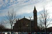 | At one end there's a church steeple (the view on the right was taken later in the day as we approached it from the other side) ... |