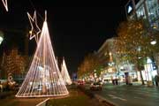 The pictures above are both taken on the Ku'Damm - the one on the left is the Kaiser-Wilhelm-Gedaechtniskirche, the one on the right is a general view of the pretty lights. When we got back to the hotel (just round the corner from here) there was also a toy soldier in lights, about the same size as Santa. |