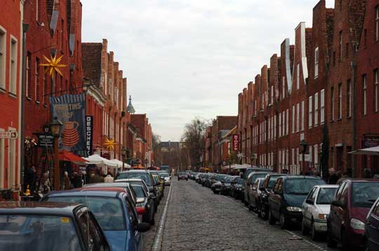We weren't really sure what these towers were for - we guessed they were guarding something, particularly with the fierce looking creatures on them. Just past there we started admiring the Dutch Quarter - Jonathon's favourite part of the town (pity about the cars). |