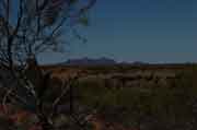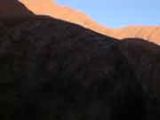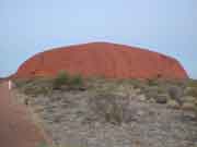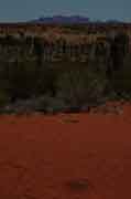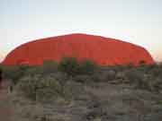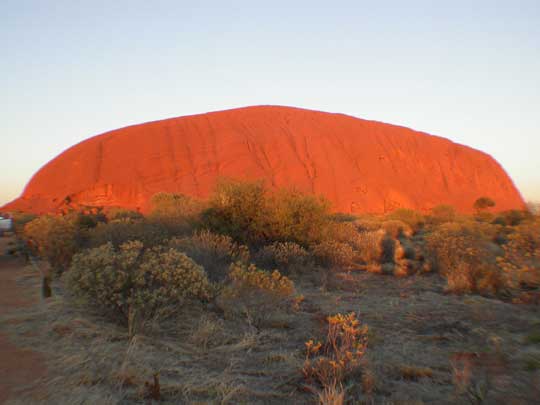 On the left is what Uluru looked like when we first arrived. The sun was just starting to peep over the horizon and, as you will see from the following pictures, the colour changes were very dramatic. |