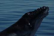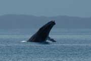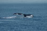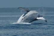 We saw loads of whales and had a show of breaching, rolling, splashing and fluking. There were a few pods of Mum and Calf and some of Mum, Calf and Escort. We even enjoyed watching one male chase off another although it was a bit worrying for the calf until order was restored. |